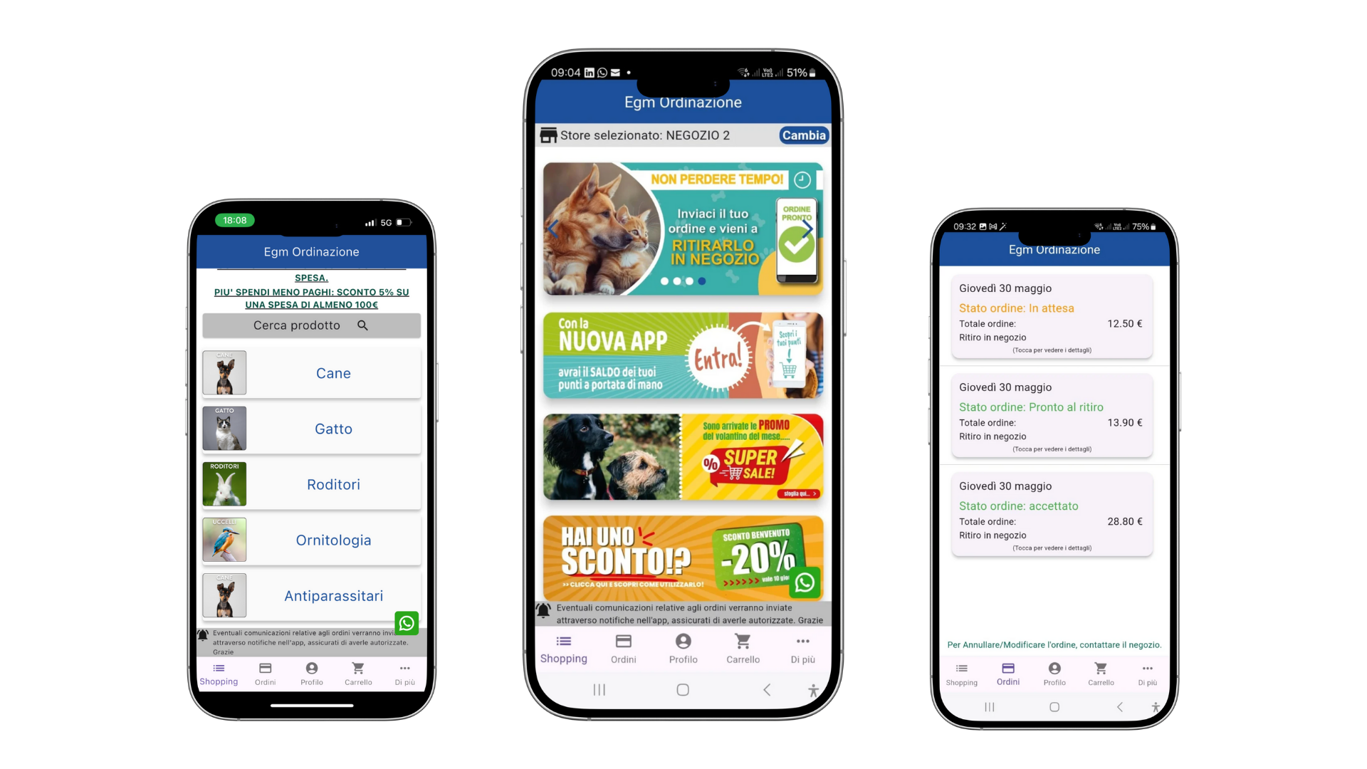 App Negozi permette ai clienti di inviare ordini direttamente al punto vendita tramite app, con conferma e ritiro in store (click & collect). Gli ordini sono sincronizzati con il gestionale ERP, permettendo una gestione immediata e senza errori.