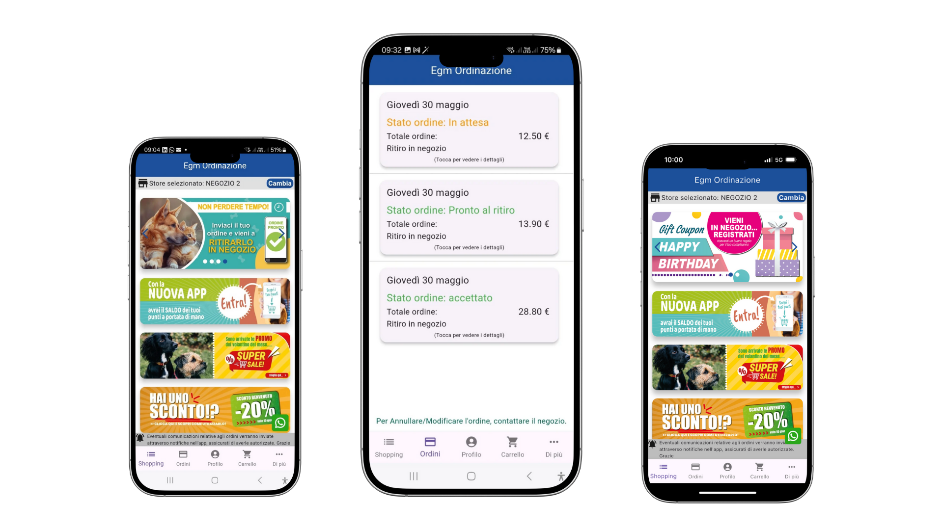 Gestione completa degli ordini con ritiro in negozio.