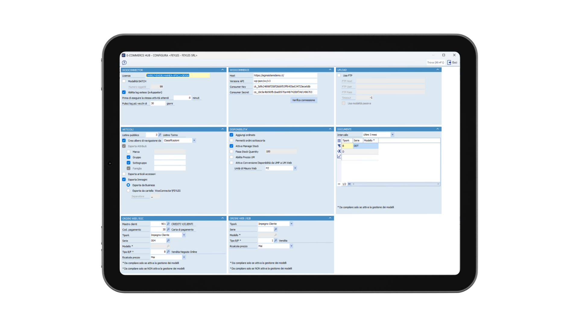 Quantità e magazzino sempre sincronizzati tra ERP e shop online.